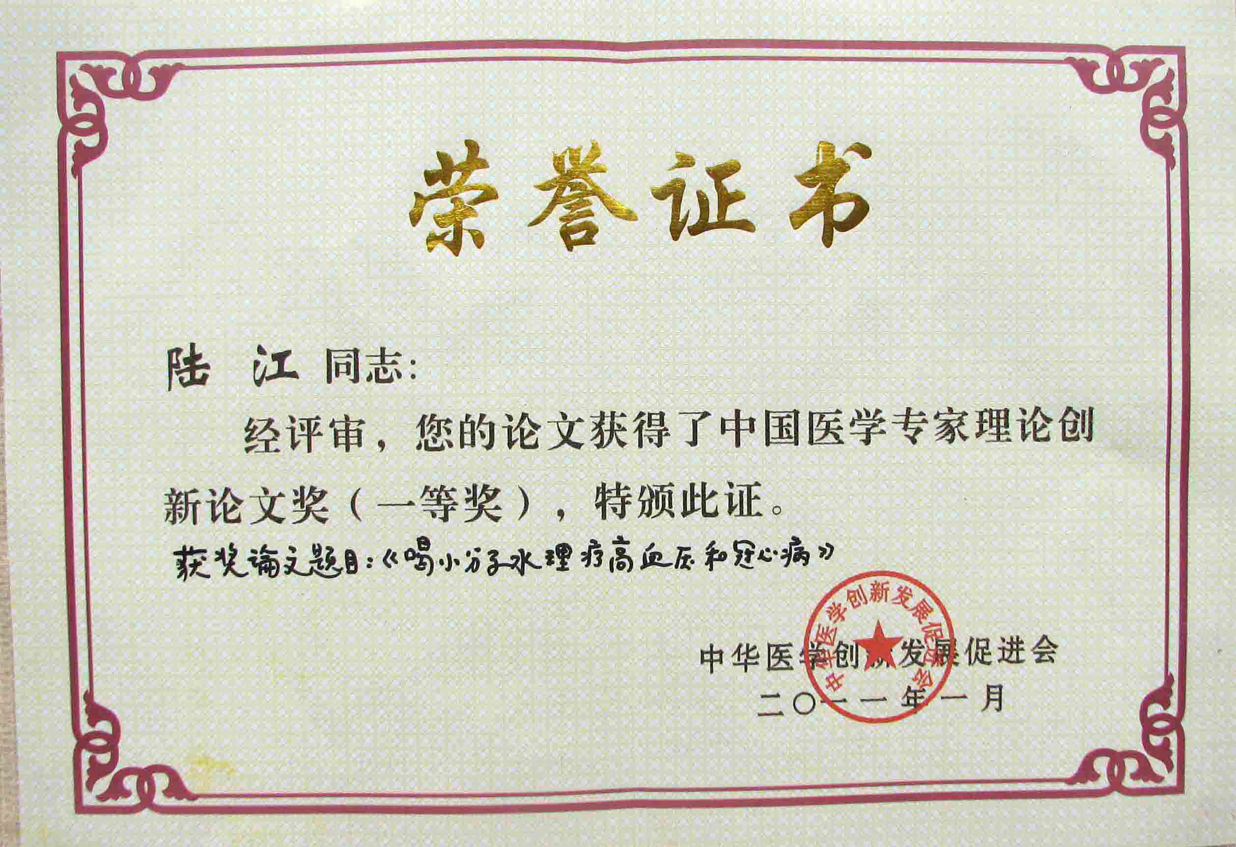 人類幾千年來患以上病癥需終生服藥,幾十年也不能治愈。可是我國南寧的高級工程師陸 江,于1990年想根治高血壓,研究發(fā)明了離子水瓶,處理出微小分子團水供飲用,經(jīng)過醫(yī)院臨床試用和專家鑒定,1999年獲中國發(fā)明專利權(quán),產(chǎn)品于2000年投放市場后一直跟蹤調(diào)查,據(jù)全國各地用戶反饋:祛除了高低血壓、糖尿病和冠心病,并使前列腺增生、咽喉炎、鼻竇炎、慢性氣管炎、支氣管炎、矽肺病、哮喘、慢性胃炎、腸炎、慢性膽囊炎、慢性腎炎、腎衰、膀胱炎、便秘、痔瘡、風濕性關節(jié)炎和濕疹皮炎及中風后遺癥等病癥不藥而愈。為什么喝微小水能治20多種病?陸 江從1991年德國科學家發(fā)現(xiàn)細胞膜水通道僅為2納米獲得啟發(fā),認為多種器官患病是因細胞脫水,不能正常代謝和分裂增殖,才使器官細胞減少致衰弱萎縮而形成細胞缺水性病癥。22年來的實踐有力地支持了“細胞脫水致病”這一重要論點,表明喝微小水可滿足細胞的生理需求,補水就能祛病,是生命科學新亮點。